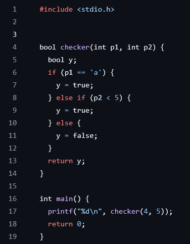 Firstly, it helps to understand how Ghidra's decompilation process works. To do so, I have a simple C programme that I compiled into a binary, shown below. While reading through this section, try to see the similarity in the code between different stages of the process. Don’t worry too much if it isn’t too clear, this will be explicitly shown in the later section.