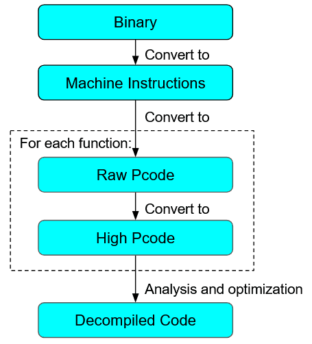 This is just a brief overview of the decompilation process. A simple summary diagram of the decompilation process is given below. More details on the decompilation process can be found here.